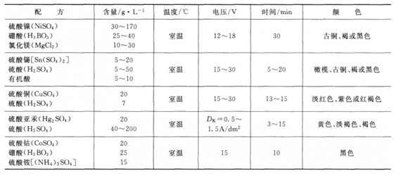 表7-4鋁及鋁合金的電解著色工藝