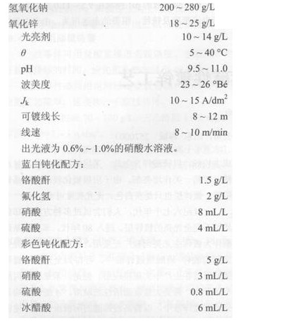 堿性鍍鋅配方及工藝條件如下: